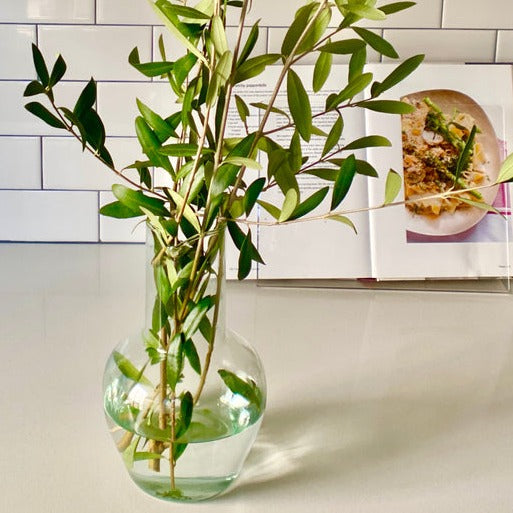 We all need to breathe. Bringing fresh greenery and flowers indoors can help with that. Our red wines need to breathe too.  Luckily we have the new Spanish Wine Vaso / Decanter that works beautifully for both.  Hand crafted in small batches from 100% recycled glass.